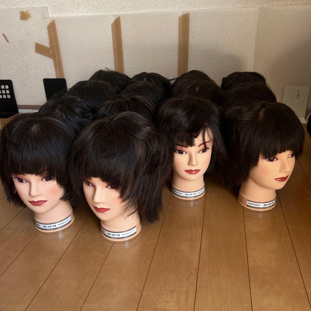 2024年の国家試験で使用しました。- セット内容: ウィッグマネキン、ヘアピン、コーム、ボトル、ジェルパウチ、ダックカール、シート- ウィッグマネキンの色: 肌色- ボトルの色: 透明、紫- ジェルの種類: ヘアジェル- ヘアピンの数: 複数ご覧いただきありがとうございます。国家試験で実際に使用したウィッグですのでメンテナンスがしてあり、作りやすいと思います。水をかけてほぐしてからご使用ください。ジェル詰め替えは水色の新品1つと使いかけが2つ、紫色は使いかけ1つです。なお裏側に名前がかいてあるものはマジックで消させていただいてます。残量は画像からご確認おねがいします。新品ボトルも2つおつけします。素人判断でウィッグの髪の毛やジェル等きれいにさせていただきましたが取り切れていない場合もあるのでご理解いただける方にお譲りします。コメントなしで即購入された場合発送までにお時間いただくのでご了承ください。。練習用カットウィッグ 12体セット。N.B.A.A. セットウィッグ。ワインディング。NBAA アップ用 ロングウィッグ 中古品。11/3. 20時までBAREN スカーフハットMサイズClassy-Beige。美容師国家試験使用可能ウィッグ3体セット。BAREN 医療用スカーフハット Dot Border -Orange Mサイズ。みかん様 オーダーウィッグ 《脹相》。ウィッグ・エクステ rantan。A_M⭐︎レビュー