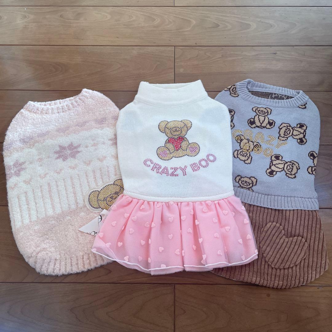 - かわいい服が入っていました。ただ真冬には寒いかな?リボンとかが好きな方にはいいと思います。オスの犬なので、ちょっと可愛すぎると思う服です。でも着れない事はないのでもう少し暖かくなったら着せます。