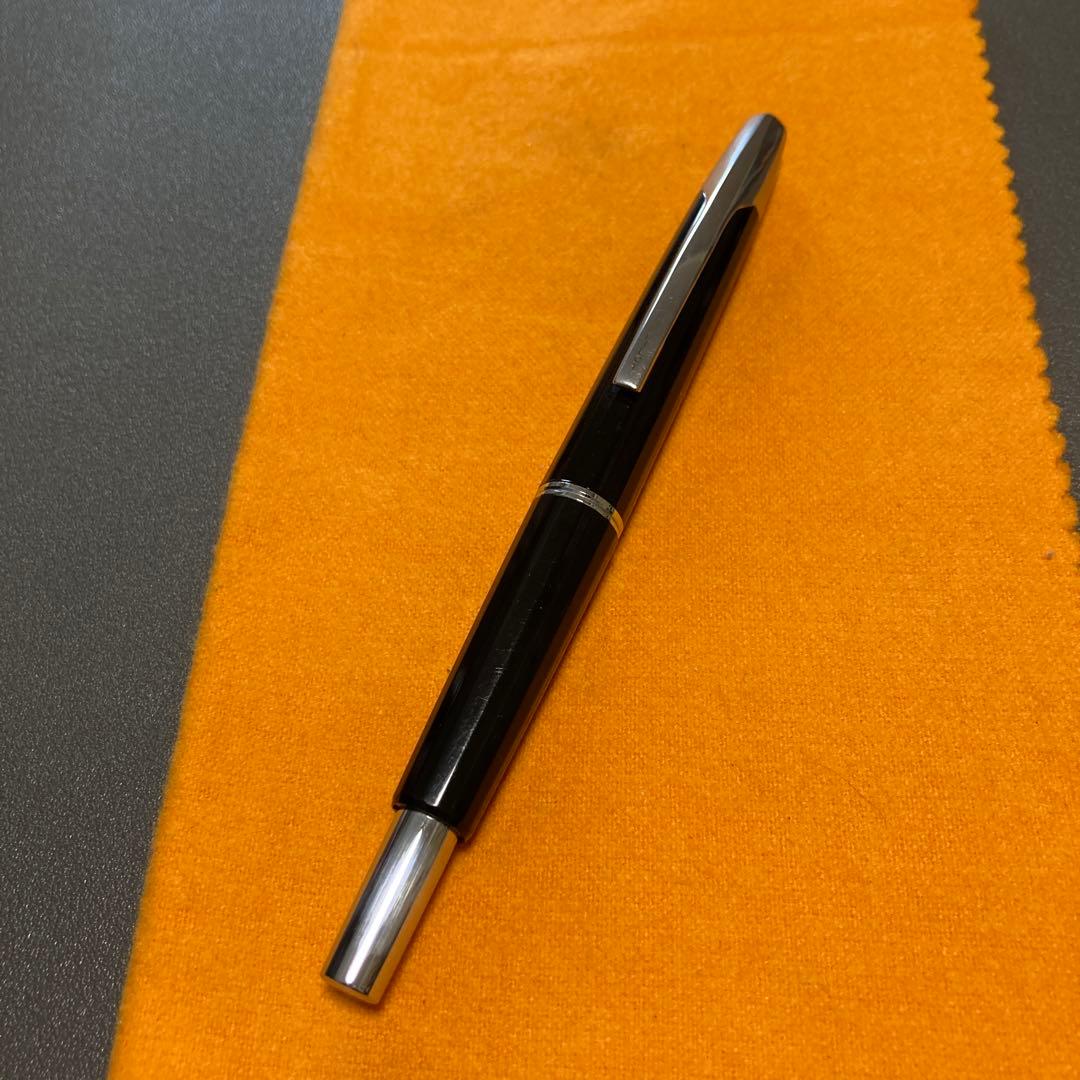 モンブランのマイスターシュテュック系ソリテールの中でも、型番「1654」として出ていたゴールドプレートのバーレイ装飾のシャープペンシルです。製造期としてはマイスターシュテュックの金属軸ソリテールが充実していた1990年代前半あたりの仕様になります。0.7mm芯のツイスト式メカニカルペンシルで、上部を回すことで芯を繰り出す方式です。クリップ根本のリングにはシリアルが入る世代の金属軸なので、現在の樹脂主体のクラシック165とは明確に質感が違います。金属軸ならではの適度な重量があり、細身でも書き始めが安定します。コンディションは「未使用に近い」として問題ないレベルです。目立つ打痕やメッキの荒れ、刻印のつぶれ、名前の刻印などはありません。芯の繰り出しも確認済みで実用可能です。中古市場ではソリテールのシャープペンシルは万年筆・ボールペンに比べ玉数が少なく、とくにこのバーレイパターンの金メッキ軸は探している方が多いモデルです。偽物やパーツ違いも一部に見られるモンブランですが、こちらは刻印位置や金属軸の仕上げ、リングの構成などから鑑定・動作確認済みですのでご安心ください。万一偽物であった場合には送料を含め全額ご返金いたします。今回は本体のみの出品で箱は撮影用ですのでご注意ください。。PLATINUM プラチナ 万年筆 ベラージュ ステンレス 14KWG/中字。野原工芸 特上黒柿 未使用 ボールペン。T*W様 UFOパーフェクトペンシルとDUXシャープナー。【新品 ケース入り】fisher SPACE PEN。◆新品 シェーファー 万年筆10本セット ◆Laser LJ-1 F-4 廃盤。希少 Parker(パーカー)75 LAQUE ブルー 万年筆。SEASAR Aero ダークブラウン 剛性感MAX シャープペン 新品未使用。uni ZENTO Signature model ボールペン 8本セット。新品 未使用 ホルベイン アーチスト 色鉛筆 木函セット 150色 木箱 全色。Pelikan スーベレーン M800 ef極細。ちいさな林檎 ガラスペン。スマッシュ 0.5 シャンパンゴールド軸 Q1005-XKSレビュー